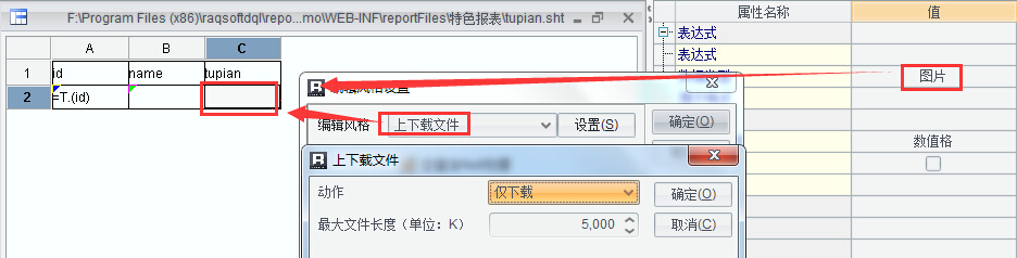 需要将图片字段设置数据类型为图片,并设置编辑风格为上下载文件,因为只为了展现,并不让用户编辑,所以这里可以设置只允许下载