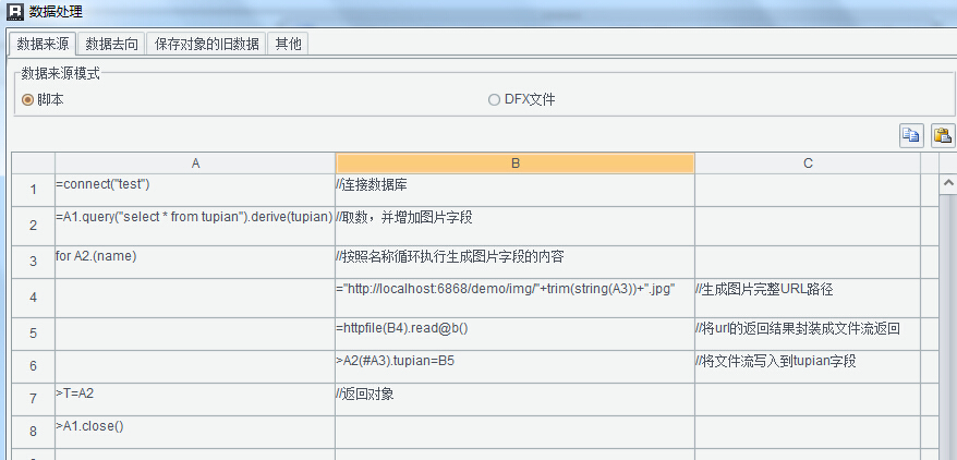 在数据来源的脚本里把 url 读成图片字节数组,从而实现 URL 图片的展现(谢谢珊珊童鞋的指导分享)