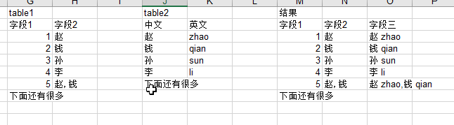 如截图所示,两张表,table1 和 table2 分别在 oracle 和 mysql 中,table2 相当于一个对照表,里面有很多条,如何得到结果表