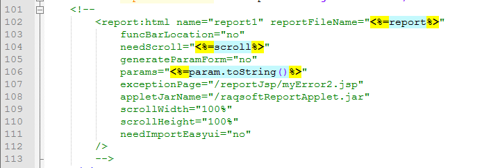 如上图所示,可以将 showReport.jsp 中的报表展现标签部分的代码注释掉