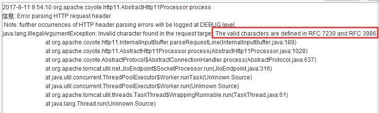 特殊符号传参问题:the valid characters are defined in RFC 7230 and RFC 3968
