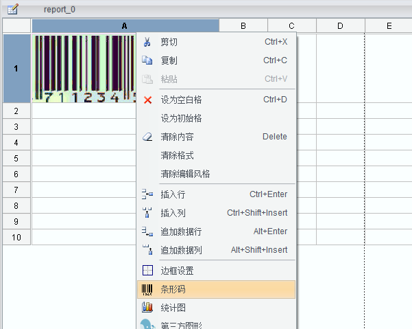 "| 在要插入条形码的单元格点击右键, [图片] 选择“条形码”,会弹出条形码编辑窗口 [图片] 条形码的码制类型,有 Code39 码、Code128 码、CodaBar 码、Ean13 码、 .."