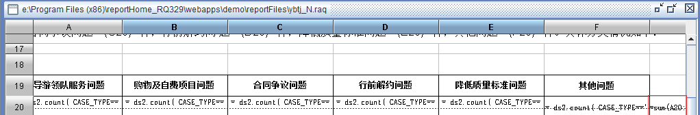 1. 因为要想实现百分比的集算首先需要求得所有分类的总和,这里在 G20 单元格 sum(A20:F20)。