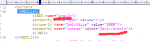 同样修改…\WEB-INF 文件夹下 raqsoftConfig.xml 文件,找到节点 然后修改其中 JNDI 标签的 name、lookup 属性值,如下图: