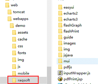 2、echartsJSUrlPrefix 配置 echarts 图形的 js 所在的父目录的访问地址,即下图中所示的 raqsoft 目录: