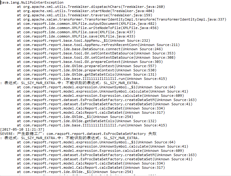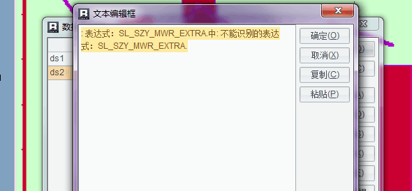 集算器下测试传入参数值 脚本运行正常,但是在报表中新建集算器数据集引入脚本并设置参数如下 浏览数据提示“不能识别的表达式:SL_SZY_MWR_EXTRA”