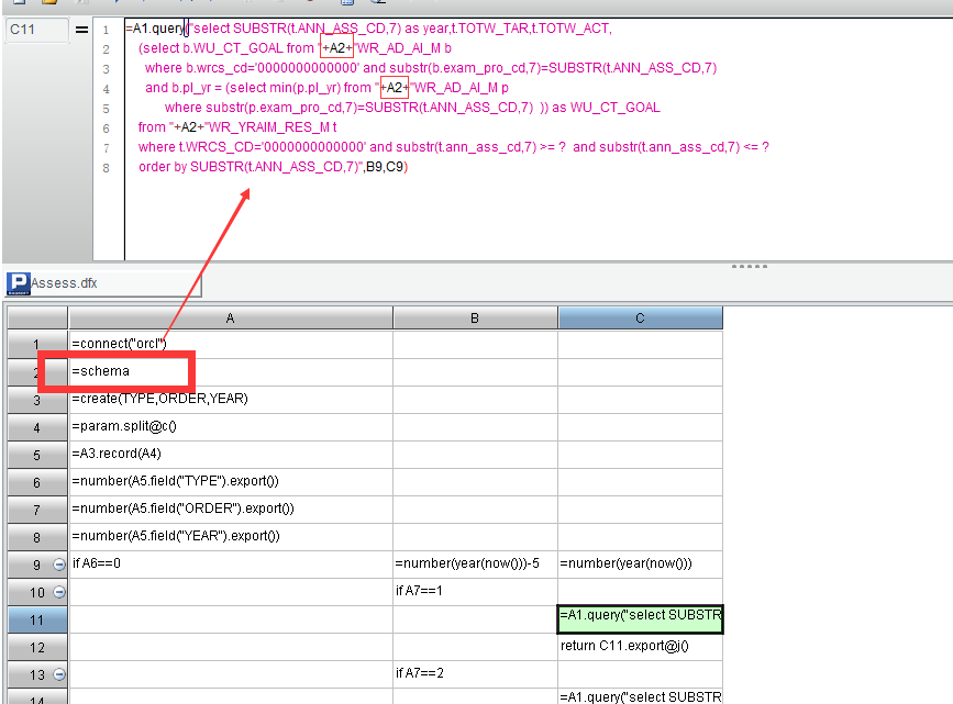 数据库中所有人的数据表都放在一个用户下面 但是这个用户不会给实施人员用 然后开了其他的用户供其使用 顾访问数据表的时候需要加上用户前缀 因为这个用户名随时可能有改动 所以集算器脚本使用参数动态的传入 XXX 用户