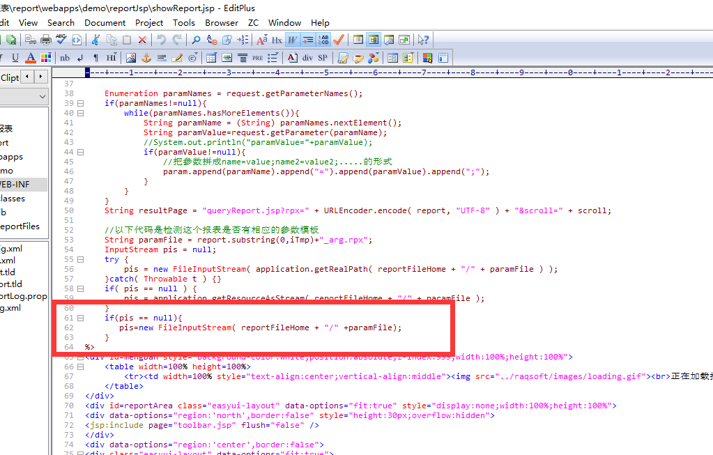 经排查 需要在展现报表的 showReport.jsp 中添加一段代码 来处理这个路径如下