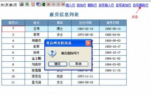 如此设置之后,当点击“自写行删除”按钮时,会弹出一个对话框,询问是否确实要删除该数据,点击“确认”则删除该数据,点击“取消”则不删除该数据。如下图