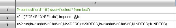 在A4中使用集算器中的run函数,结合新增的自定义函数,对原有数据进行转码,此处对两个字段转码,分别为:MAXDESC,MINDESC
