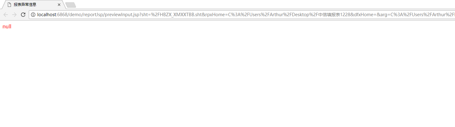 填报表设计完成后,web 端查看时报 null,如下图所示: