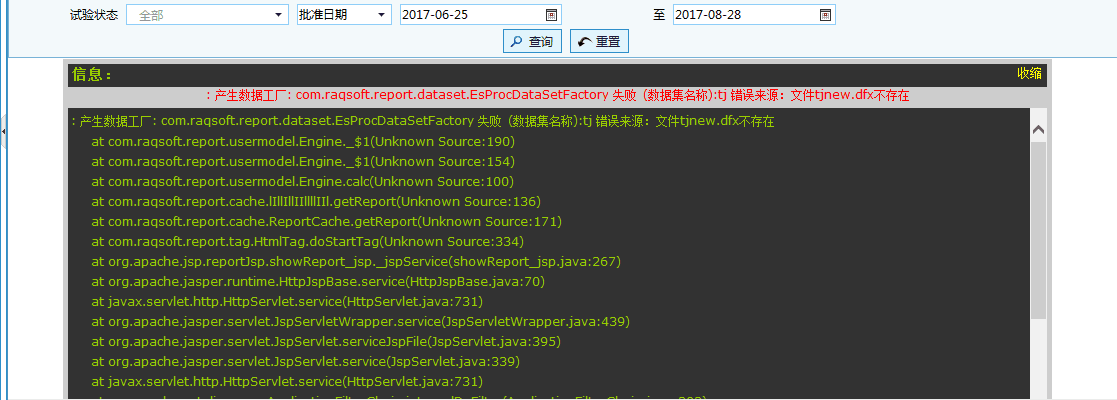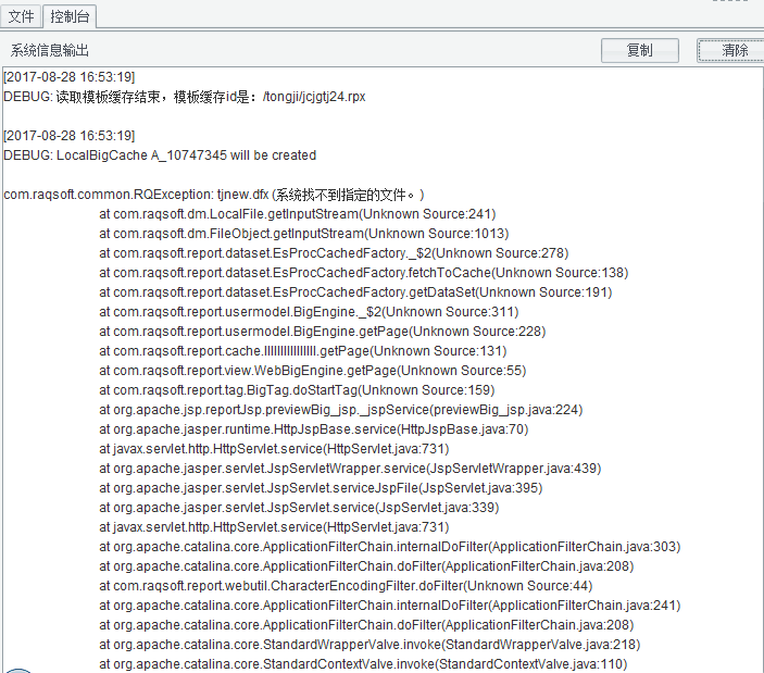 用集算器做的报表,系统中访问的时候报 dfx 文件不存在,前台报错如下图所示: