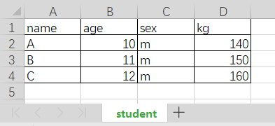 =create(${A1.(name).(~+"age,"+~+"sex,"+~+"kg").concat@c()}) |