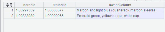 输入参数(比如 1 或 2),从 json 文件中取出数组中指定成员的三个字段:horseId, trainerId,ownerColours。比如输入 1,结果应该是: