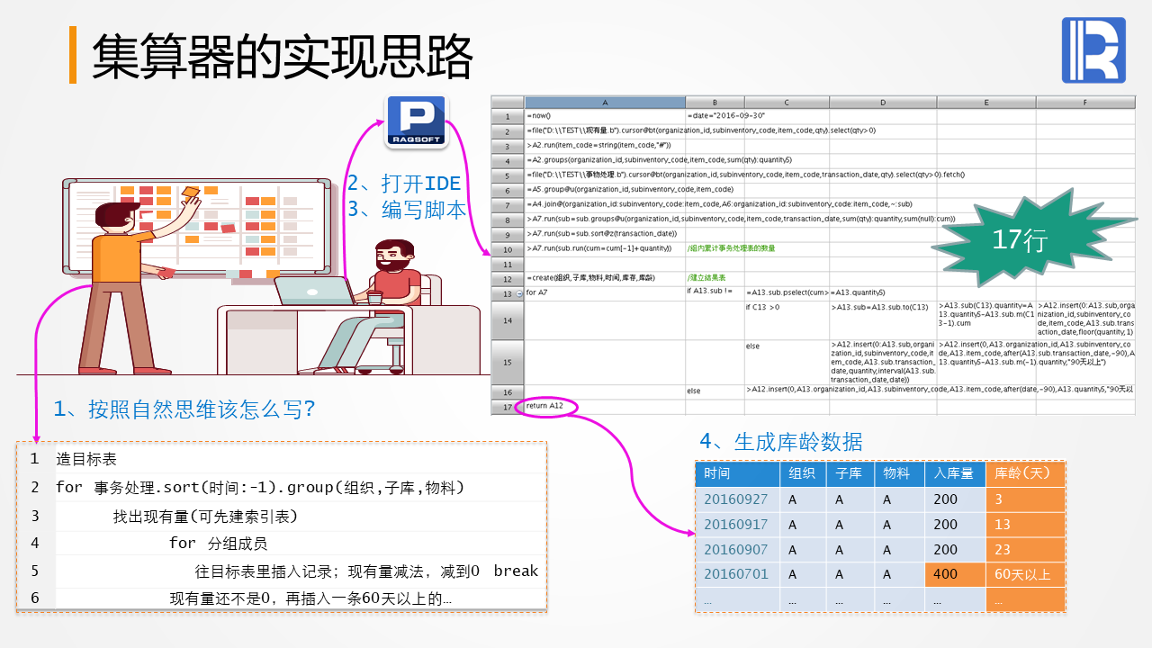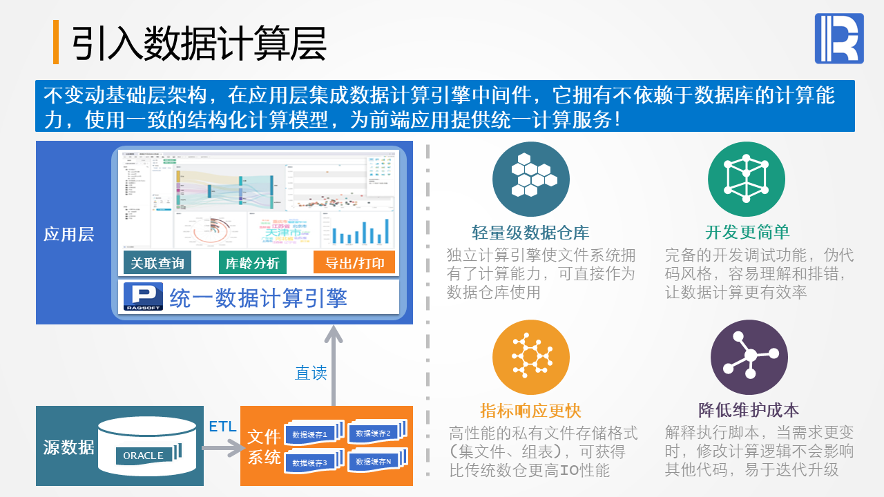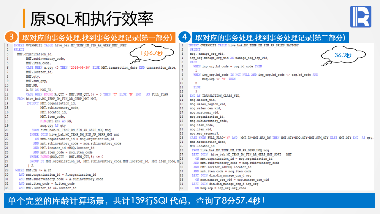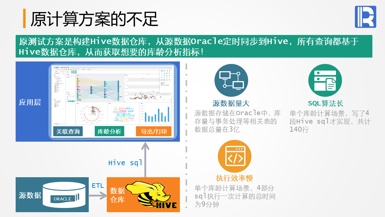 企业为了提高供应链的整体效率,通常都会把库龄计算作为整体经营业绩的考核指标之一。通过全局范围的库龄分析,及时了解热销商品和滞销商品及其分布情况,合理地进行库存调度和市场促销,可以大大提高库存周转率,促进销售的同时降低库存资金积压风险!原测试方案是构建 Hive 数据仓库,从源数据 Oracle 定时同步到 Hive,所有查询都基于 Hive 数据仓库,从而获取想要的库龄分析指标!但存在几点不足:源数据量大、SQL 算法长、执行效率慢等。若不变动基础层架构,只需在应用层集成数据计算引擎中间件,就能完美的化解这些难题。我们看集算器怎么做?生产制造业库龄计算案例