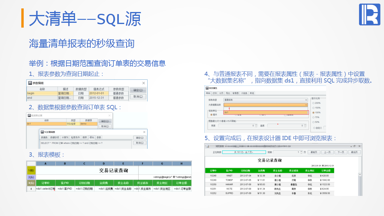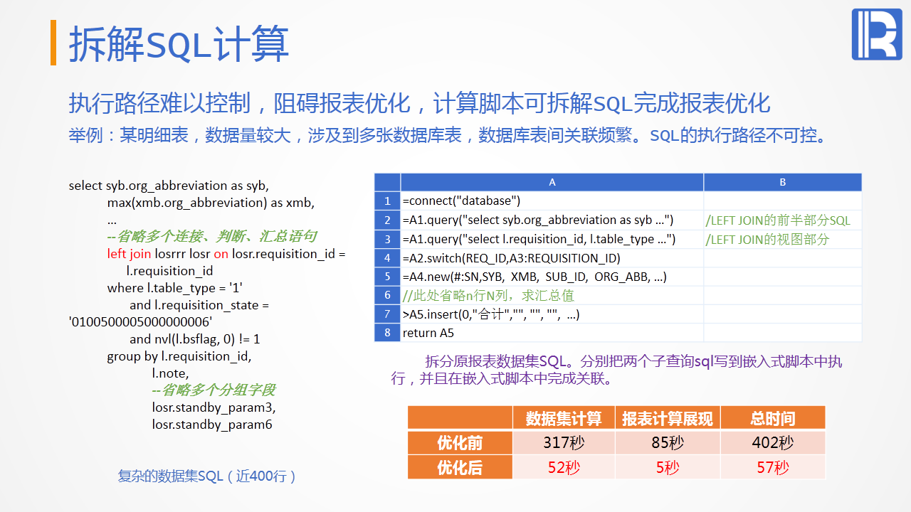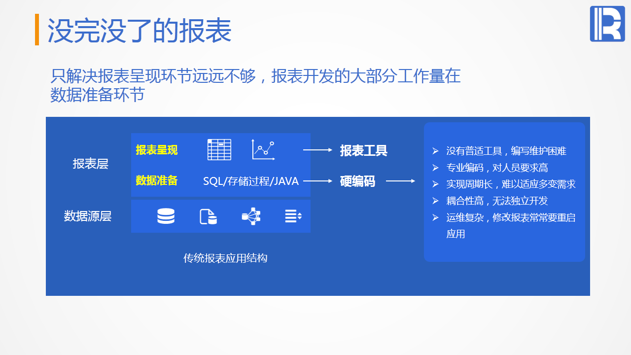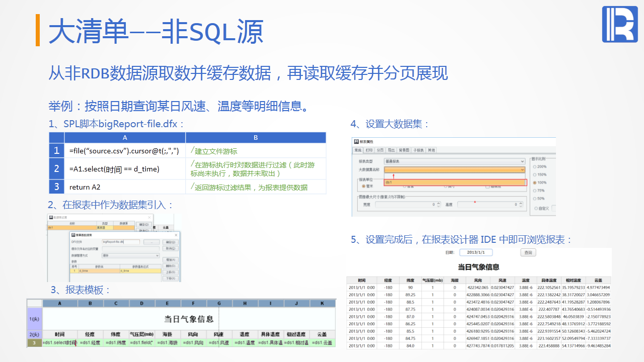 本片通过《报表展现》、《数据源》、《开发体系结构》、《性能与容量》这四大部分,介绍了如何使用计算脚本来提升报表的开发效率