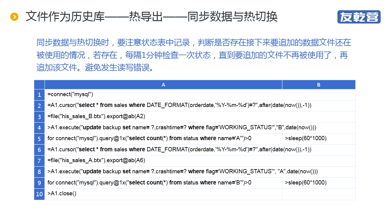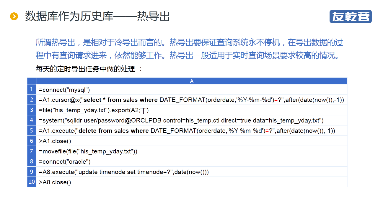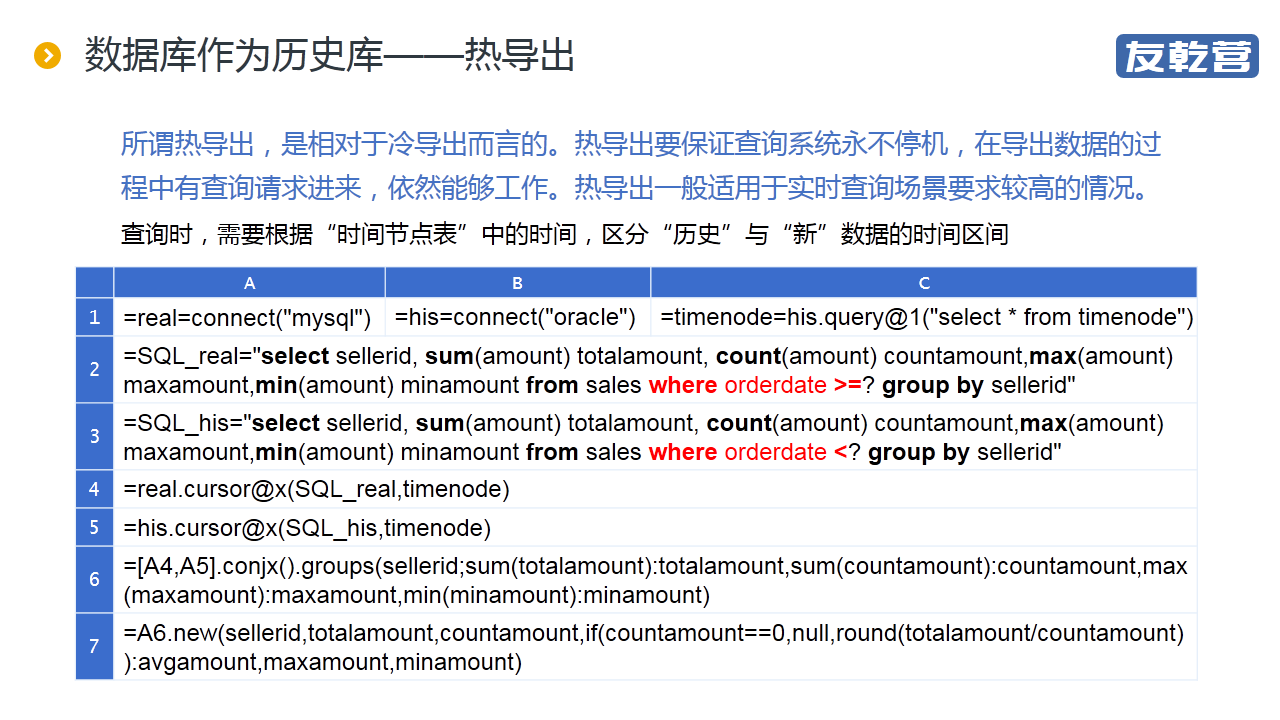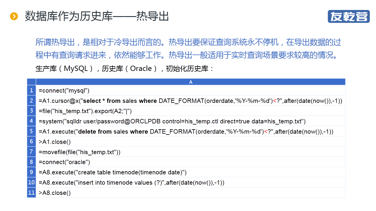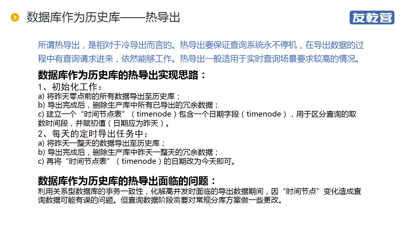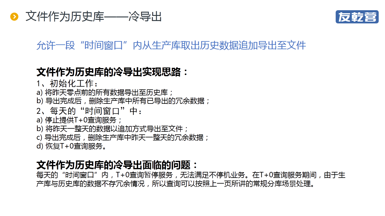 "【摘要】 定期将大数据导出到历史库以减轻生产库的压力,再基于分库计算技术,不难实现高性能的 T+0 查询报表。但如何导出却是个问题。 冷导出相对容易,但导出过程中必须停止服务。若要保证提供不间 .."