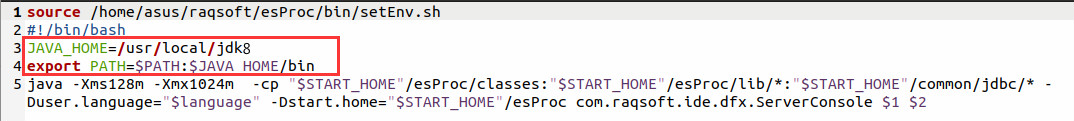 sh /home/asus/raqsoft/esProc/bin/ServerConsole.sh -h &