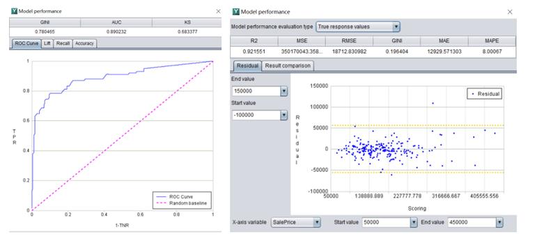 关于评价指标选取的重要性,有时候不是我们没做出好的模型,而是我们没选择对正确的评价指标。不同的指标的应用场景不同,预测模型不能只看准确率而要结合业务问题选择合适的评估指标。上述只是两个非常简单的例子,模型的评估指标有很多准确率只是其中一种,除了指标计算还有一些图形化的方法也可以用来评估模型,比如 ROC 曲线,Lift 曲线,查全率曲线,还有回归模型中用到的残差图等等。如果这些指标和图形都要手动计算和绘制也挺麻烦的,但是使用自动建模工具就非常方便了,除了可以自动建模外,它还会自动计算出各种评价指标,用户只需要知道如何使用这些指标就可以了,使用起来非常方便。