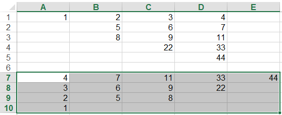 现需将 M 列的二维表转置为 M 行,要求从第 M 列开始转,依次为 M-1,M-2…2,1 列