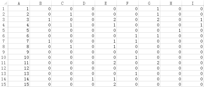有 Excel 文件 matrix.xlsx,数据如下所示: