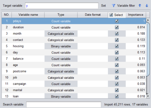 - 打开易明建模工具 YModel,导入数据,工具会自动识别变量数据类型并计算各种统计量