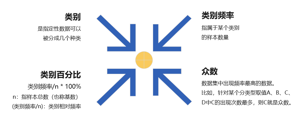 定性数据是指不能用数值尺度记录的数据,他们仅仅能被分成不同的类别,比如人的性别分为男、女,美国 50 名 CEO 的政治背景(民主党、共和党或无党派),消费者对某产品的满意程度(十分满意,一般,不满意等)……。