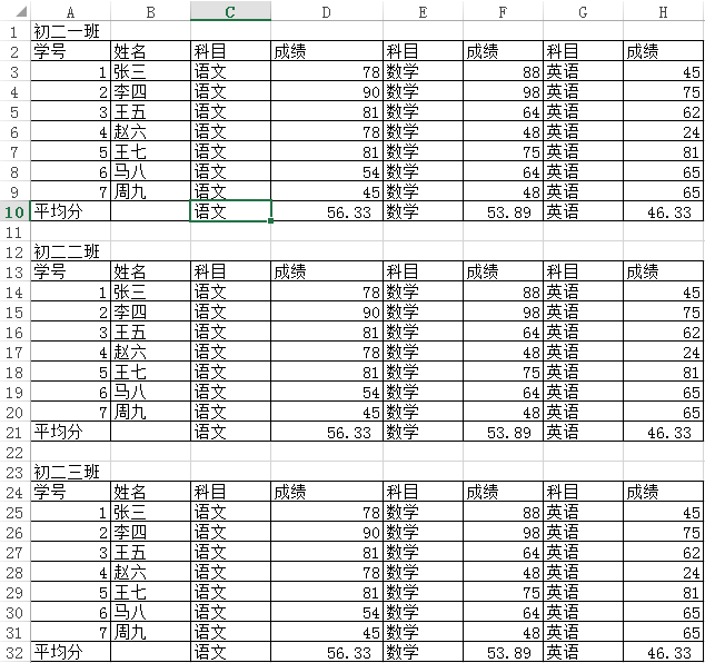 执行程序后,各个班级名的 excel 文件中就是需要的结果。