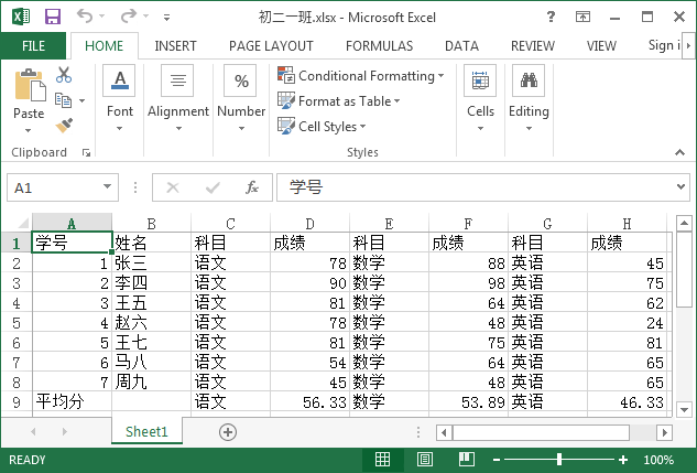 有 Excel 文件 book1.xlsx,数据如下所示: