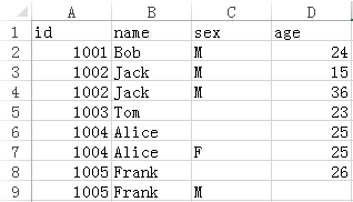 有 Excel 文件 book1.xlsx,数据如下所示: