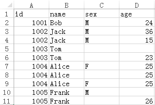 有 Excel 文件 100.xlsx,部分数据如下所示: