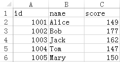 有 Excel 文件 english.xlsx,是英语成绩,数据如下所示: