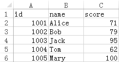有 Excel 文件 math.xlsx,是数学成绩,数据如下所示: