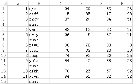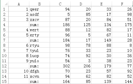 有 Excel 文件 sum.xlsx,数据如下所示: