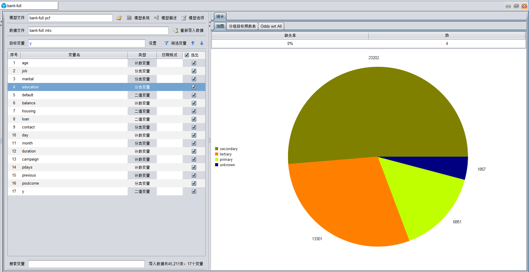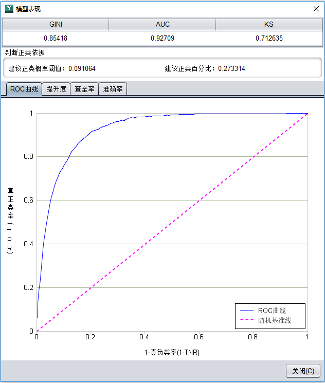 模型建好后,还可以查看各种模型指标比如 AUC、ROC、Lift 等等,方便评估模型质量