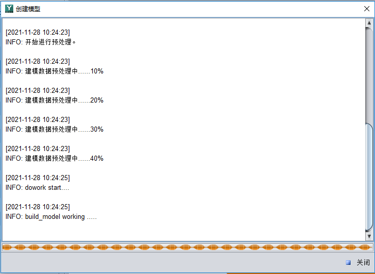 按钮,开始建模。整个数据预处理和建模过程是完全自动进行的不需要人工操作。
