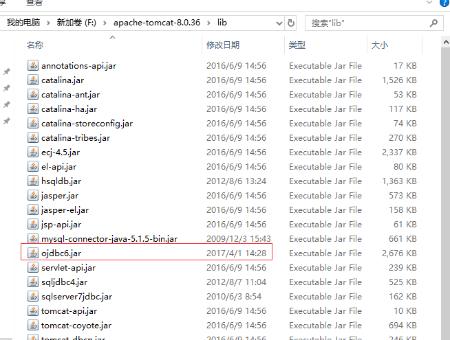 5. 放置数据库的驱动包值 tomcat/lib 目录下