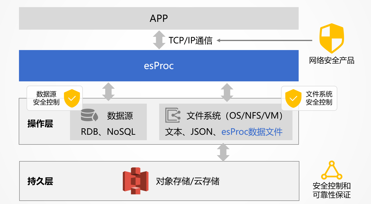 开放能力以及使用文件存储又会带来一个问题,原来传统数据仓库的封闭性可以在体系内提供安全与可靠性保障,不再绑定存储的 esProc 如何解决这两个问题呢?