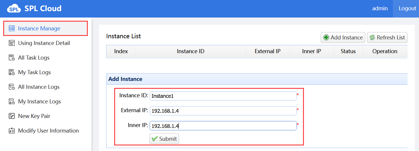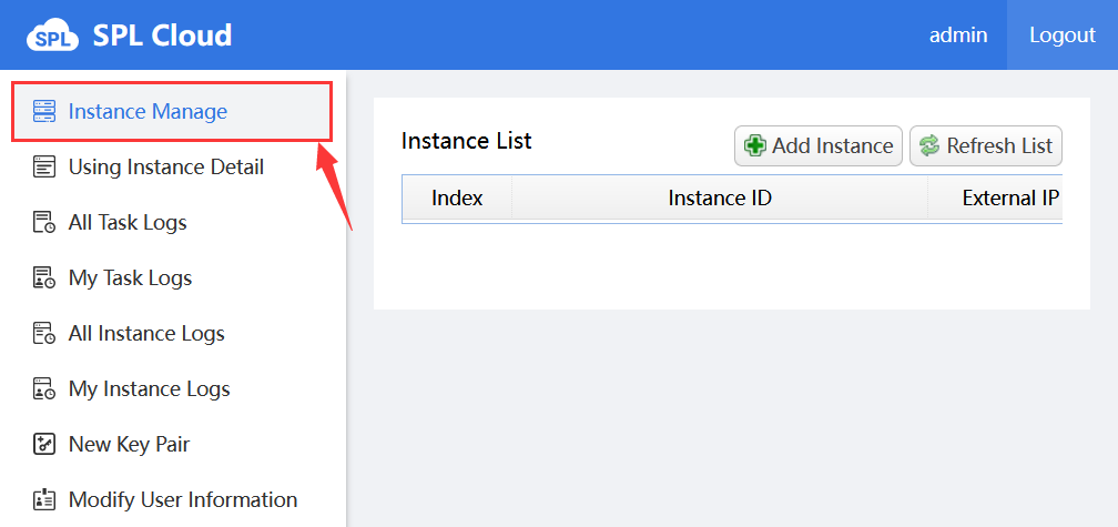 My Instance Logs:查看我的实例日志。用于查看当前登录用户的实例日志。