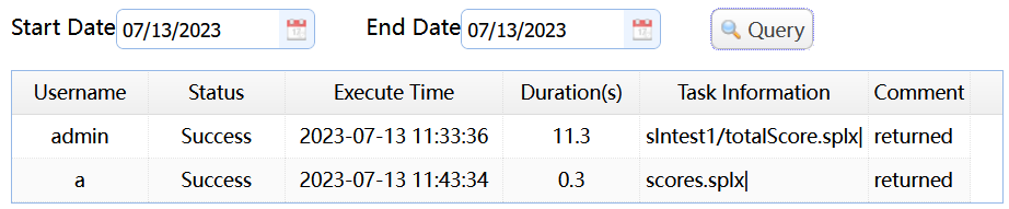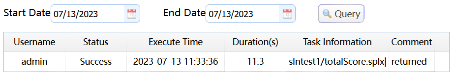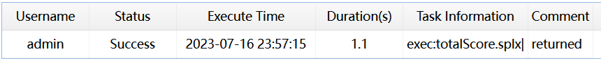 执行 slntest1 存储桶中的 totalScore.splx 脚本,获取返回值 |