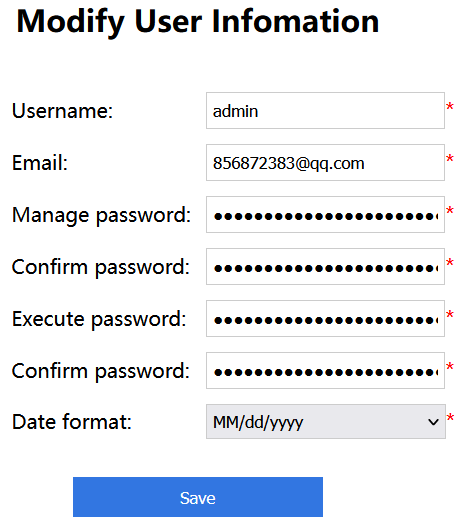 Execute password: 执行密码。可用于 qvsConfig.xml 中配置 QVA 密码。
