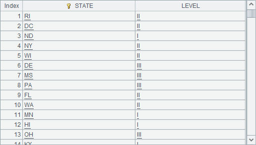 | 2 | =file(A1).cursor@ct().sortx(ID) | =file(B1).cursor@ct() | =T(C1).keys(STATE) |