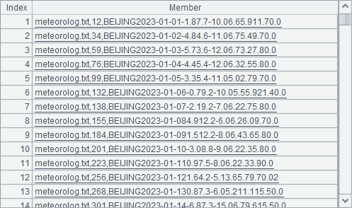 | 2 | =A1.conj(file(~).read@n().(if(pos(~,“BEIJING”),[A1.~,#,~].concat@c())).select(~)) |