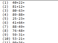 (1) 随机生成 20 道口算题,题目为 100 以内的加减法,同时结果不为负数,且这些题目要各不相同。要求题目前面自动生成 1~20 的序号,题目后以等号结尾,存储到文档 Question.txt 中。