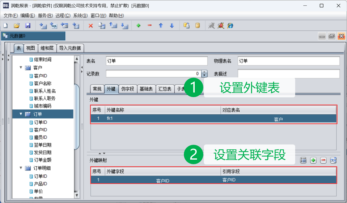 为每个有关联的表指定外键和关联字段,整个建模过程需要对数据结构熟悉的技术人员来完成。