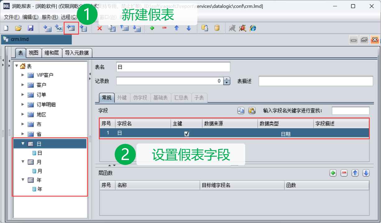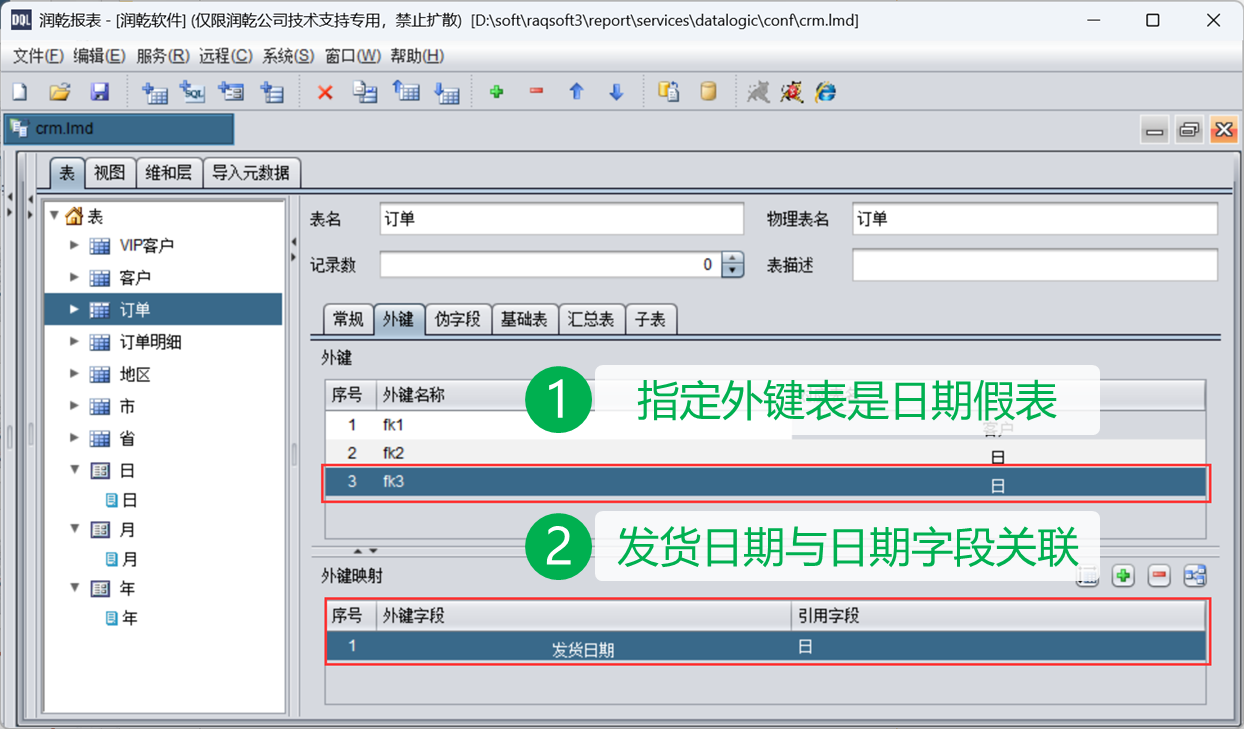 添加了日期假表,接下来需要把所有日期字段与“日”假表关联。