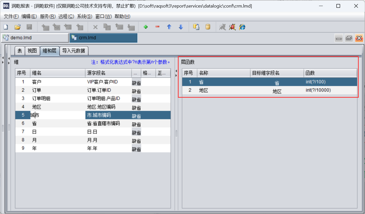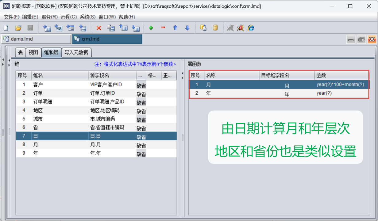 在日期维上增加层函数,以便可以从日期计算出年和月等不同粒度。