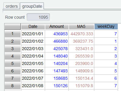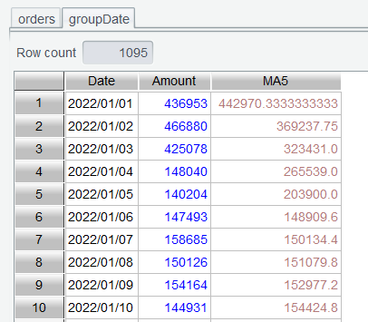 第二步:groupDate 表增加计算列,计算列的表达式设置为Amount[-2:2].avg()