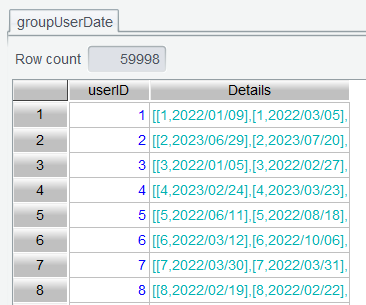 第二步:groupUserDate 中,按 userID 分组,并选择保持明细