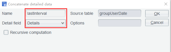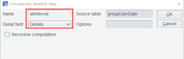 第四步:groupUserDate 上,使用合并明细,将所有记录合并为 allInterval
